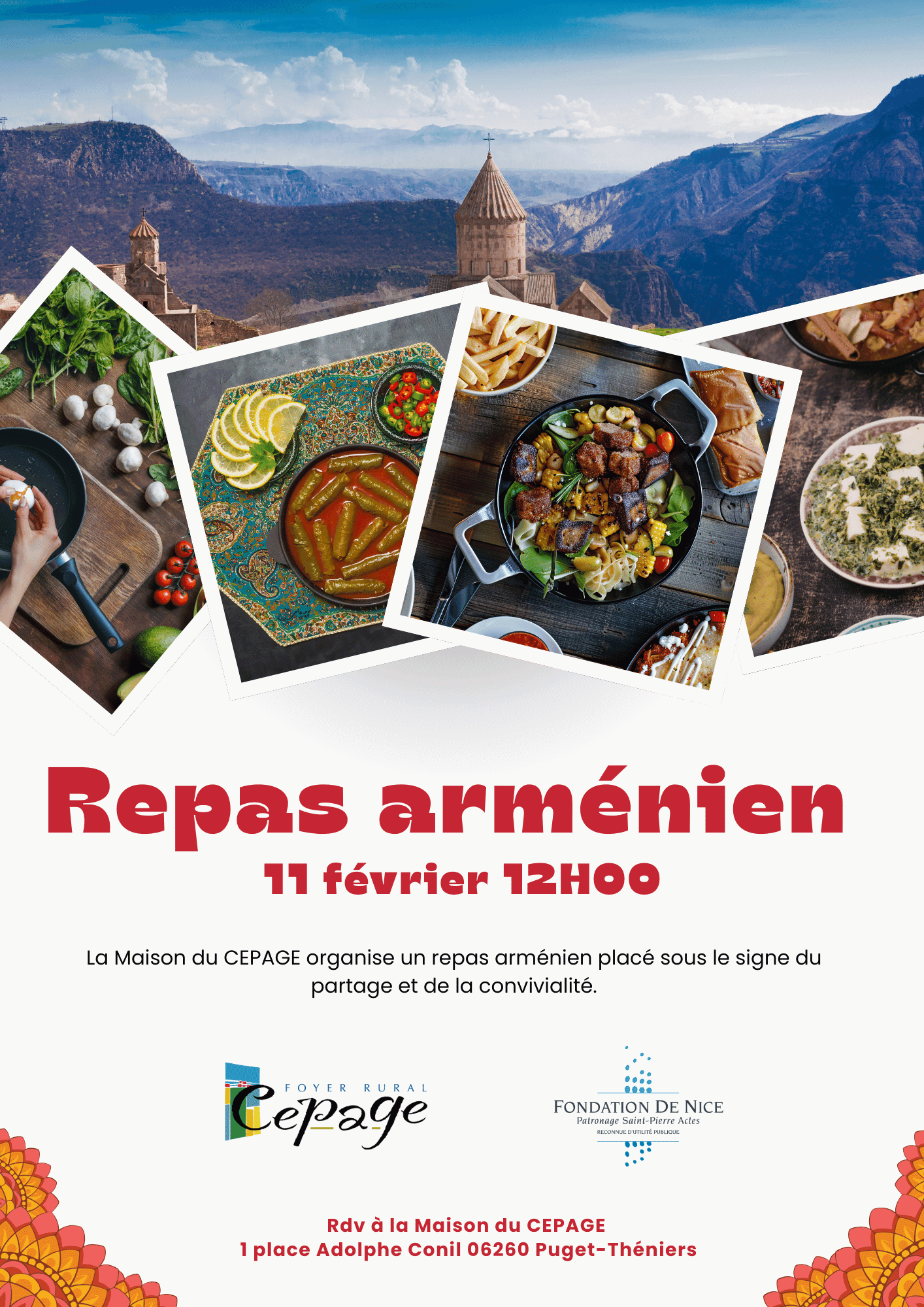 11 février : atelier cuisine de 10h à 12 puis à 12H : repas issu d’une culture différente. Ce mois-ci » célébrons » l’Arménie – en partenariat avec la Fondation de Nice